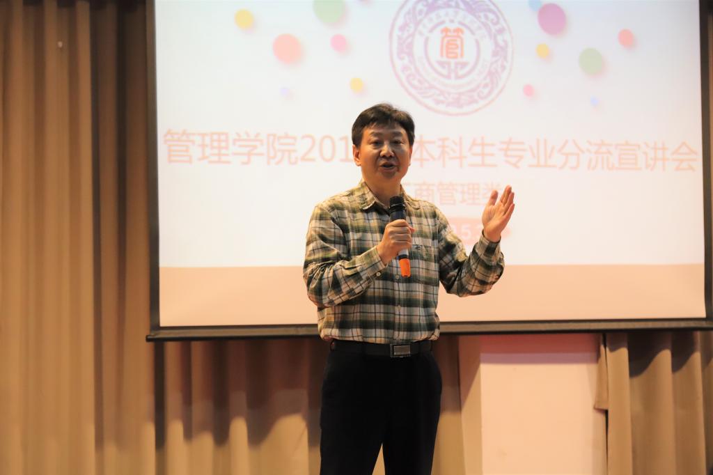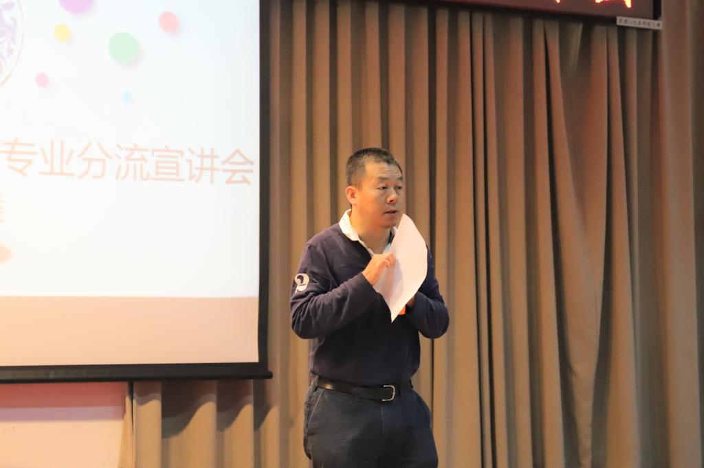 首先,陈平路简要介绍了专业分流的基本状况。他指出专业选择应从自身兴趣与发展方向两方面综合考虑,希望同学们能够找准自己的方向。