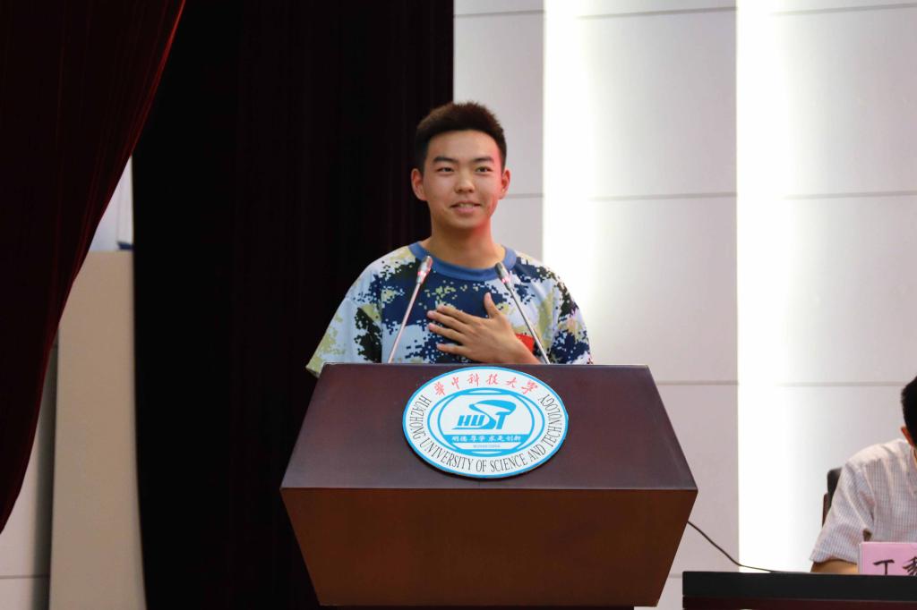 本科生新生代表,来自工商管理类1905班的钟一奇同学分享了自己初进BETWAY必威以来的心路历程。他感动于老师与学长学姐们的帮助和指导,感激于与同学们的相遇和陪伴,怀揣着对未来的期待。他号召同学们明确自己的学习目标和发展规划,与多彩校园同行,全面锻炼自己,坚定家国天下的理想与担当。
