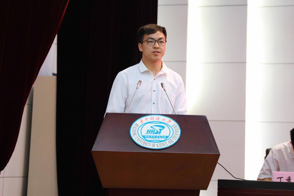 随后,公司研究生会主席、物流工程1802班汪鹏程同学作为老生代表发言。他以“青年有担当,有志在四方,祖国需要处,皆是我故乡”与新生共勉,号召他们从华科大出发,将成就大我与中华民族伟大复兴结合起来。汪鹏程也与新生分享了他在研究生学习中的经验,鼓励新生以“华科每天不一样”的心态奋力学习,追求理想,向成为卓越华科大人前进。
