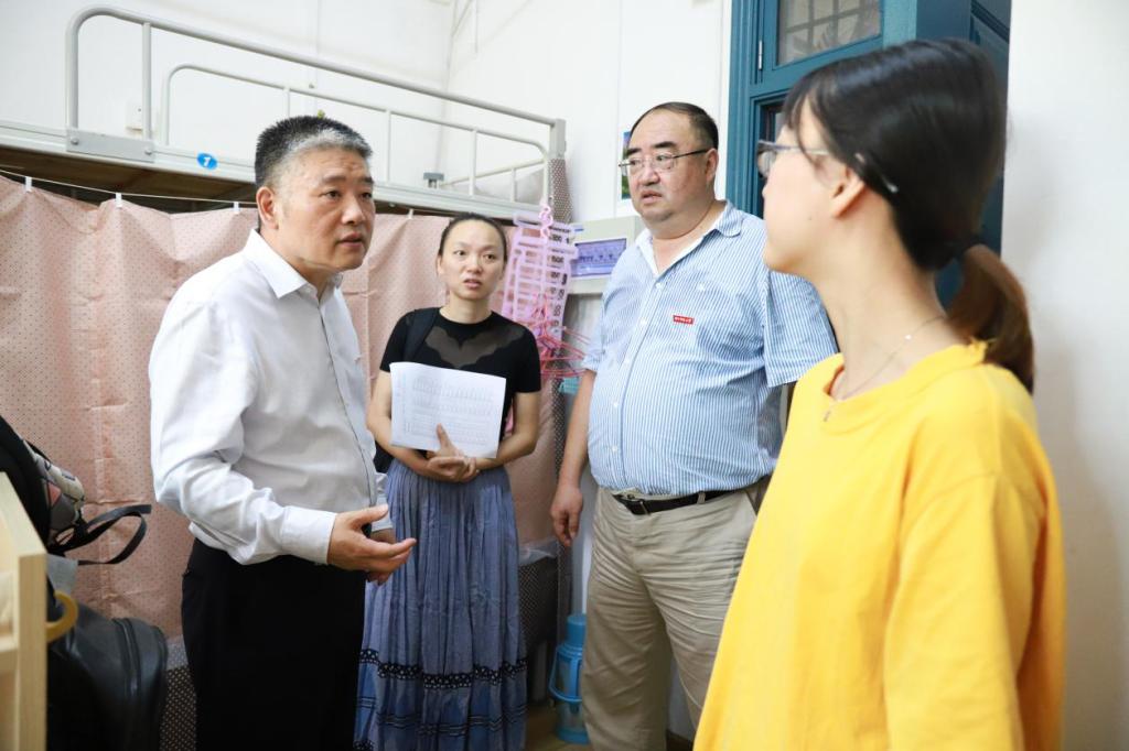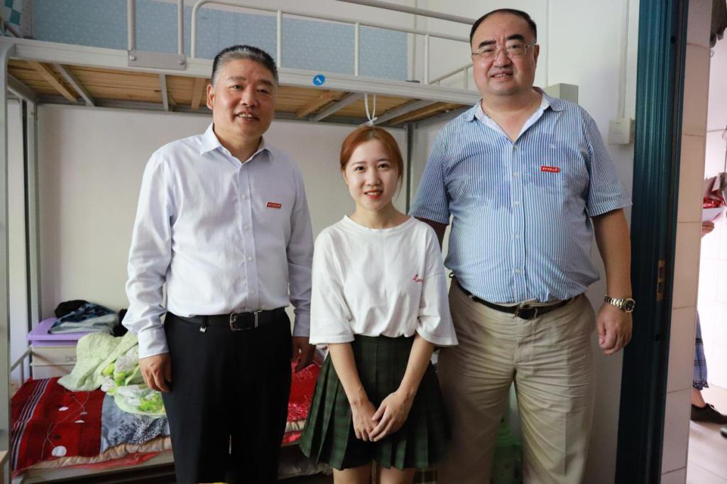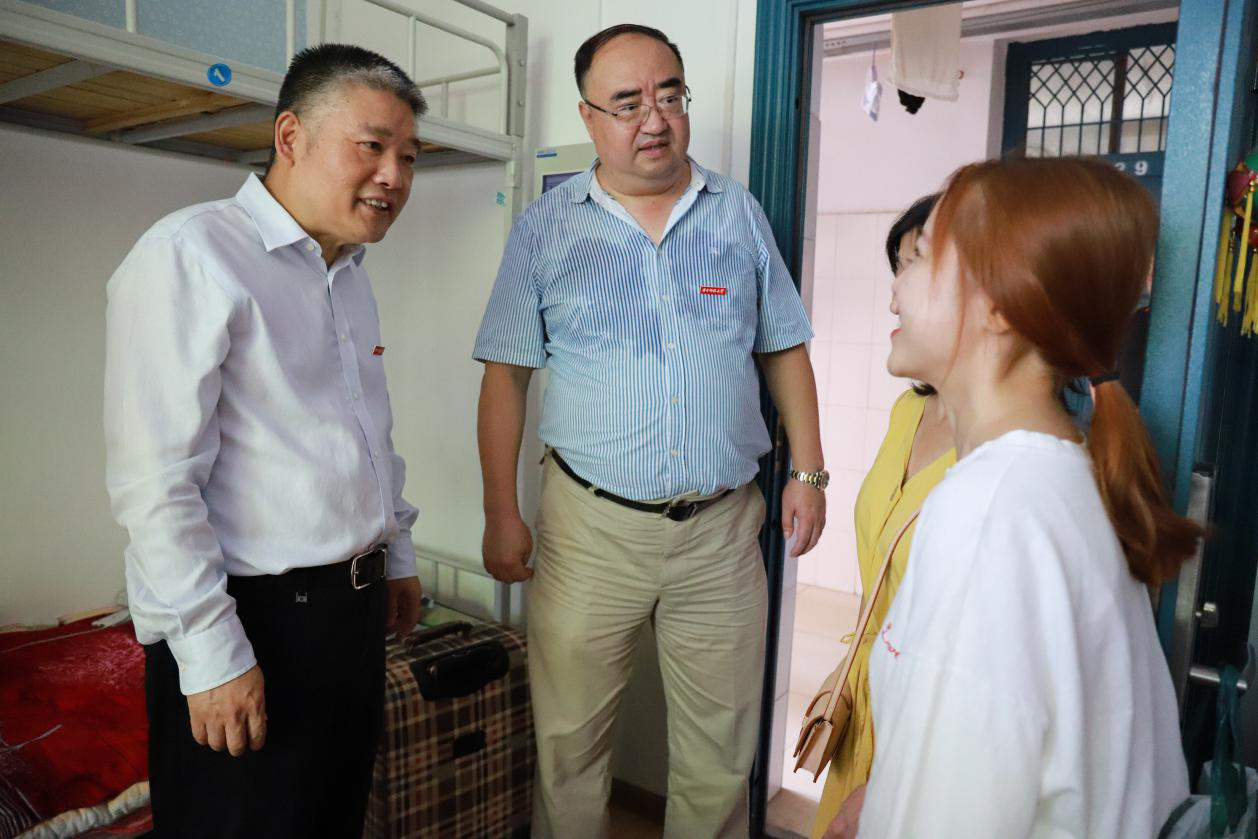 在东七舍新生宿舍,梁茜向已经入住的部分新生及其家长了解入住感受,询问入学手续办理情况,并征求他们的建议。看到公司研究生志愿者也在迎新现场开展工作,梁茜向他们表示感谢,希望广大研究生员工干部充分发挥新生引路人的作用。