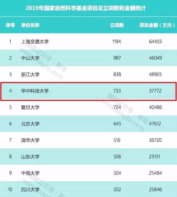 以下是目前统计完成的2019年高校和科研院所国家自然科学基金项目的立项情况(统计数不含8月2日公示的国家杰青项目):