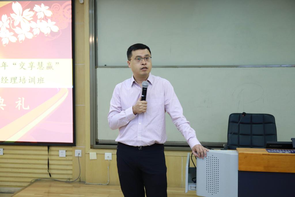 随后,张喆发表讲话。张喆首先表达了对于BETWAY必威所提供优良学习环境的由衷感谢。紧接着,他从此次培训的主要任务切入,就办好此次“交享慧赢”对公客户经理培训班与在座的各位同事交流了三点想法。他强调,第一,学员们应该珍惜机会,在BETWAY必威这样一所享誉中外的学府中学思践悟;第二,他要求各位学员空怀心态,一方面虚心向老师学习,进一步获取新知识,开阔新眼界,另一方面主动向同事学习,进一步用好培训平台,相互交流;第三,要学用结合,在培训结束后,做好归纳总结,把学习成果转化成开拓创新的思维方法、精准发力的营销技巧、事半功倍的工作方式。张喆希望,全体学员在此次培训期间能够学到真本领,不虚此行。