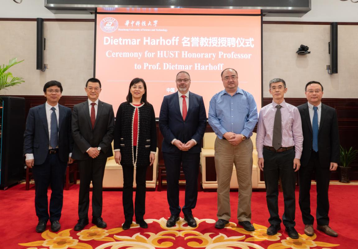 仪式结束后,参会领导和Harhoff教授合影留念。