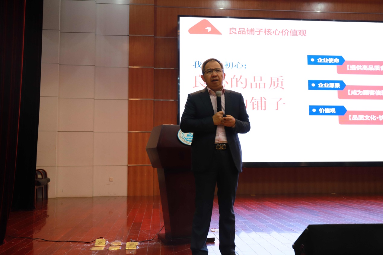 杨银芬表示很荣幸能够回到母校与MBA员工进行交流。他以良品铺子核心价值观开题,围绕新零售的历史背景、什么是新零售以及良品铺子如何布局三个方面展开演讲。
