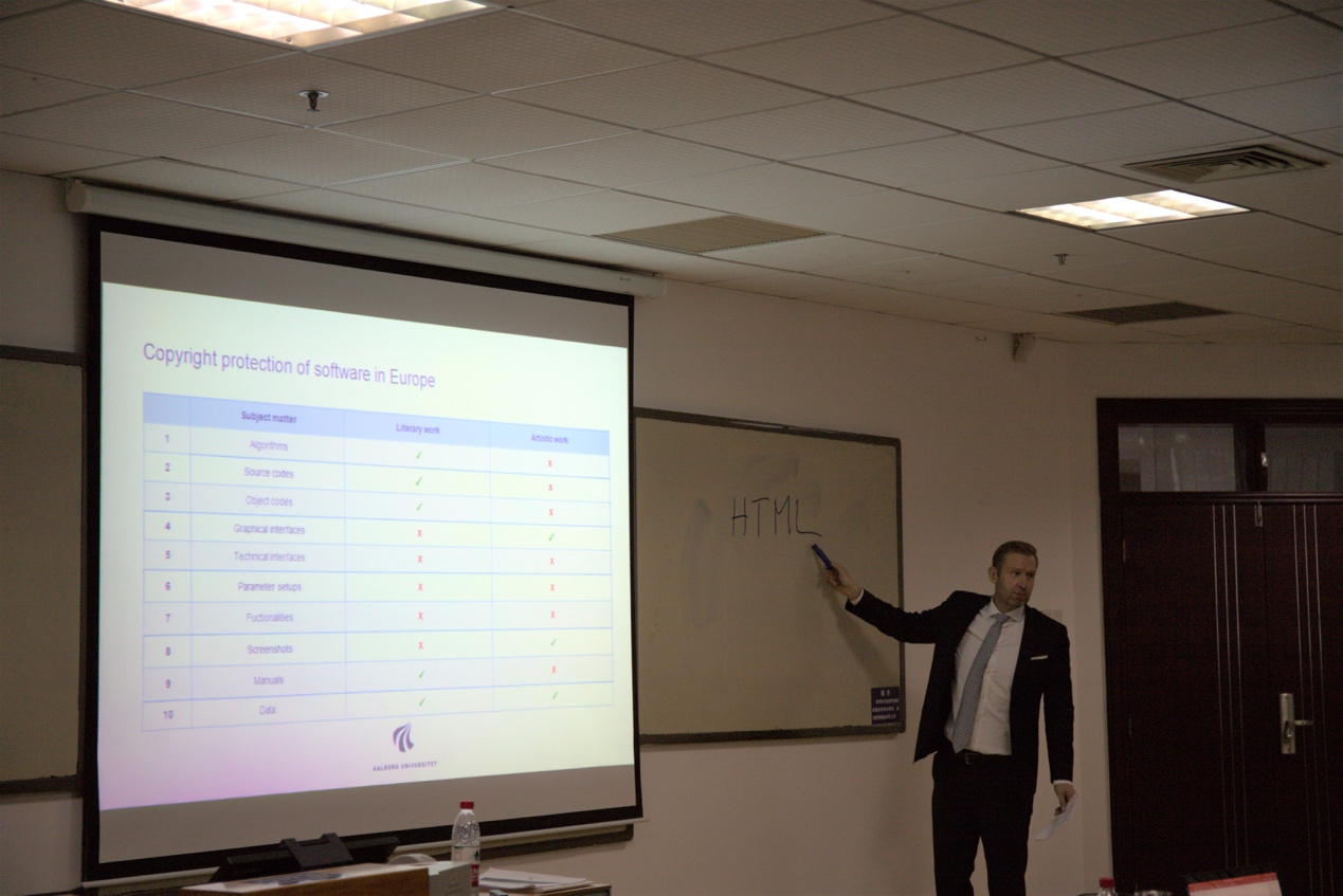Torsten Bjørn Larsen副教授在11月8日作了题为“IP Protection of Software and Artificial Intelligence in Denmark and Europe”的讲座。在讲座中,Torsten Bjørn Larsen副教授的讲座内容包含两部分,一是欧洲软件著作权和专利的保护制度,二是欧洲人工智能生成物著作权和专利权的讨论。在有关欧洲软件著作权和专利专利的保护部分,他介绍了软件获取著作权和专利保护的要求以及数据库著作权保护独特性的问题。在第二部分,他通过列举欧洲相关的案例,生动具体地阐述其中的关键问题,并对未来发展提出可行的设想,引发在场师生的热烈讨论。