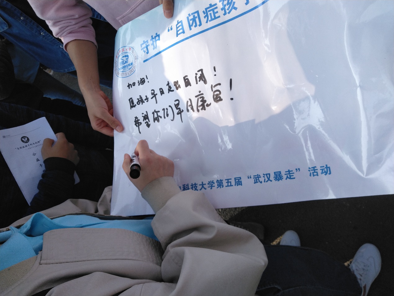 徒步行进过程中,主办方在沿途安排了丰富有趣的活动环节。号召大家拿起公益手册主动给路人宣传自闭症儿童公益行动知识,传播公益理念,加深社会对这一群体的关注。另外通过收集暖心祝福和寄语,主动为自闭症群体发声。