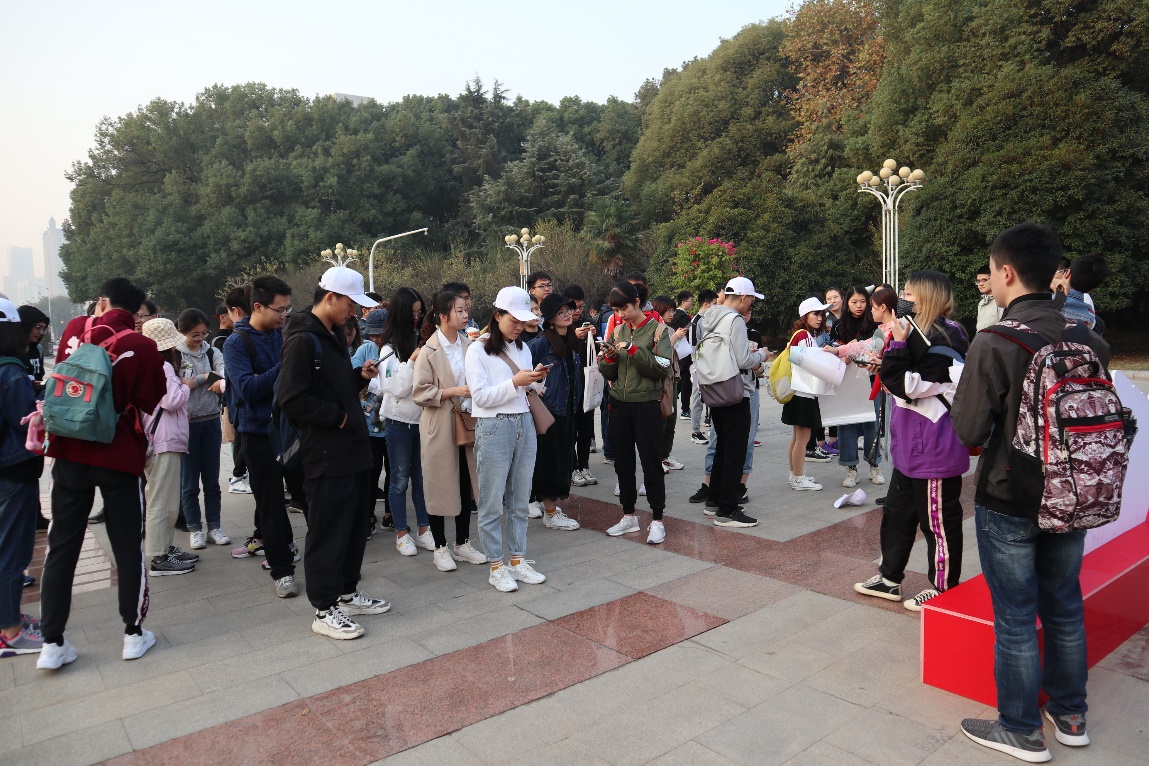 早上7时许,近百余名来自全校各个院系的硕博研究生陆续来到南一门集合,工作人员将全体成员分成7支队伍后,统一宣读活动规则并发放活动物资,随后在队长的带领下乘坐地铁前往东湖梨园开启一场关爱自闭症儿童的公益徒步之旅。