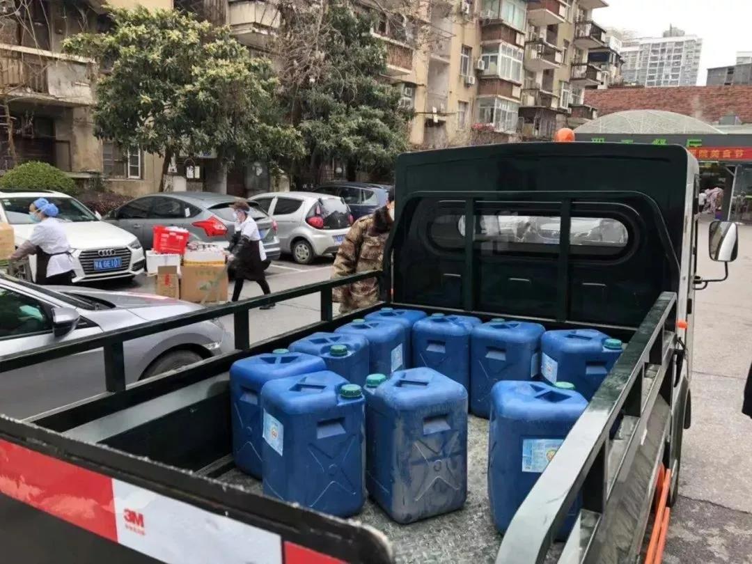 除了方舱项目施工现场调度,胡喆明还同时组织同事们积极募资,购置医疗消毒防护物资送往医疗前线。购置的第一批抗疫物资,已送到医疗机构及基层单位,其中武汉市第一医院、武汉市第三医院、武汉市东湖医院、武汉市精神卫生中心,每家各援助医用酒精150斤及84消毒液500斤。援助武汉硚口区六角亭街办事处医用酒精40斤,84消毒液150斤,一次性使用医用口罩400个。援助硚口区六角亭街顺道社区医用酒精40斤,84消毒液150斤,一次性使用医用口罩200个。
