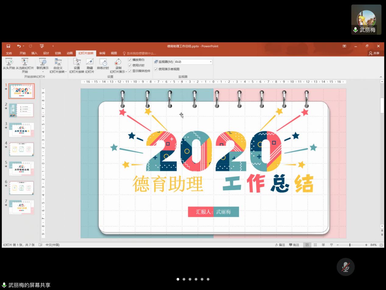 硕士2019级横向德育助理朱家怡对学年工作及工作完成情况进行了汇总概括,并收集了同学们对公司、学科发展的部分建议和意见与大家进行了共享。