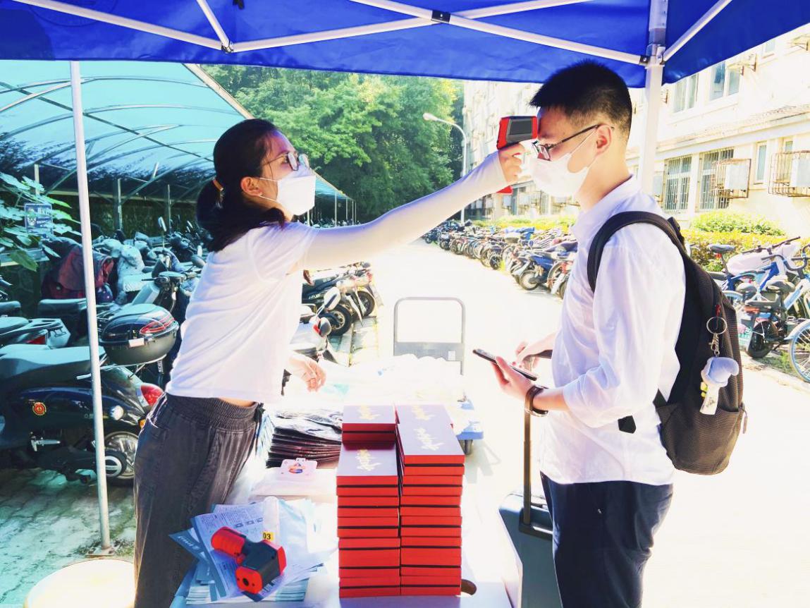 从湖北宜昌返校的物流1602班刘宏瑞表示:“公司为我们毕业生可以返校做了很充足的准备,在车站接送,校门口免费检测核酸,发放抗疫大礼包等等,作为毕业生深切感受到了温暖。这次回公司不能把每个食堂每个窗口吃一遍了,未来一定会回来找本校读研的同学弥补遗憾。”