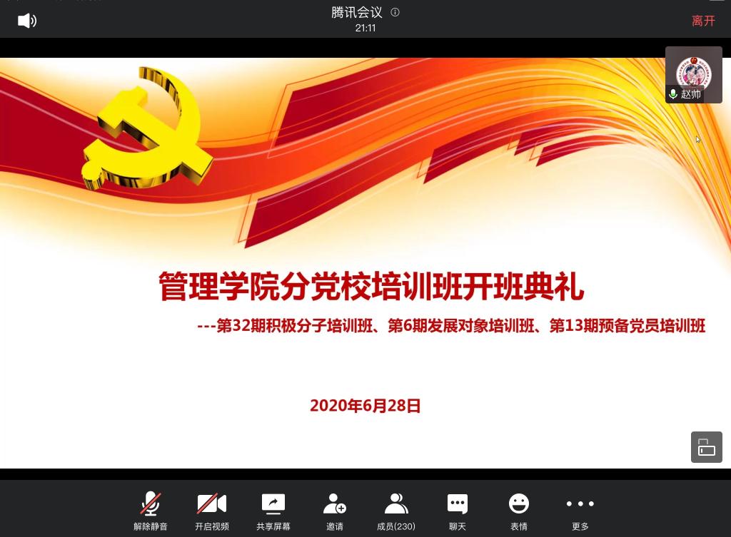 开班典礼开始,赵帅表示,由于疫情防控原因,公司开展线上党校学习,并向大家介绍了当前的培训工作开展情况,