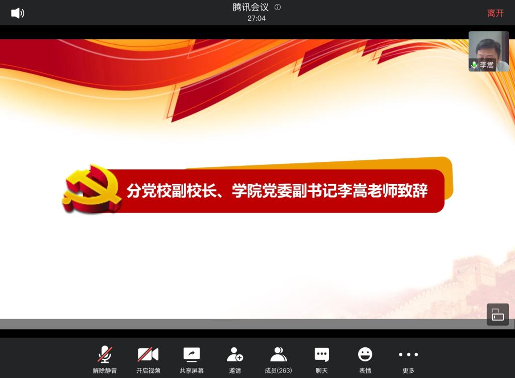 管实1904班李昊龙同学作为第32期积极分子培训班学员代表发言,他表示,作为当代有志青年,要牢记中国共产党人的初心与使命,作为一名入党积极分子,更要不忘初心,砥砺前行。由于疫情原因,公司克服困难让我们能够有机会进行线上党校学习,让大家相聚云端,我们应当心存感激。全民抗击疫情的三个多月里,引发了自己的很多思考,从小到大听闻的党员故事进一步提升了个人政治觉悟,未来将会脚踏实地,将热情落到到行动中来。