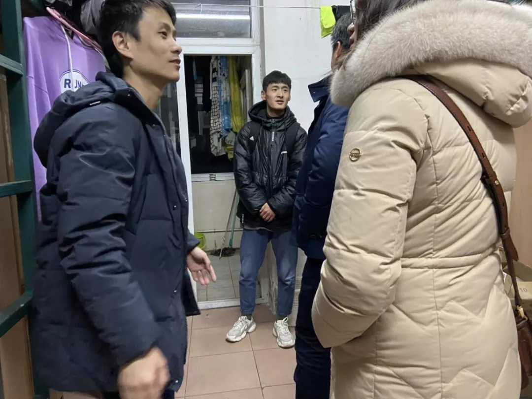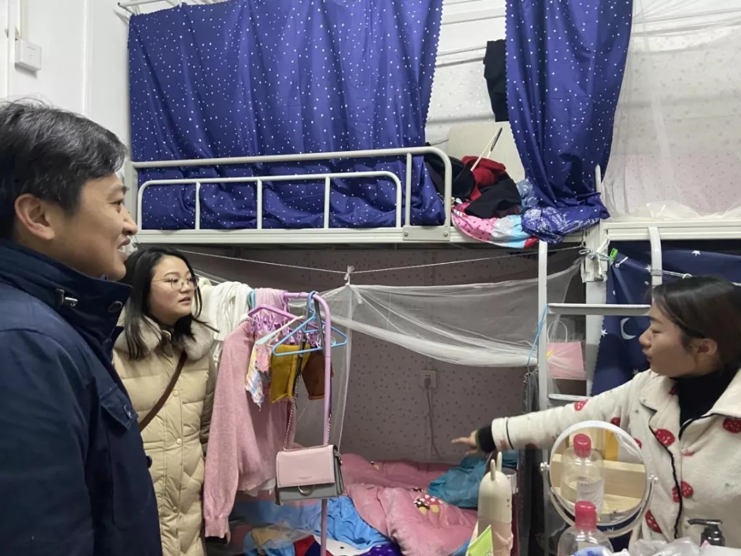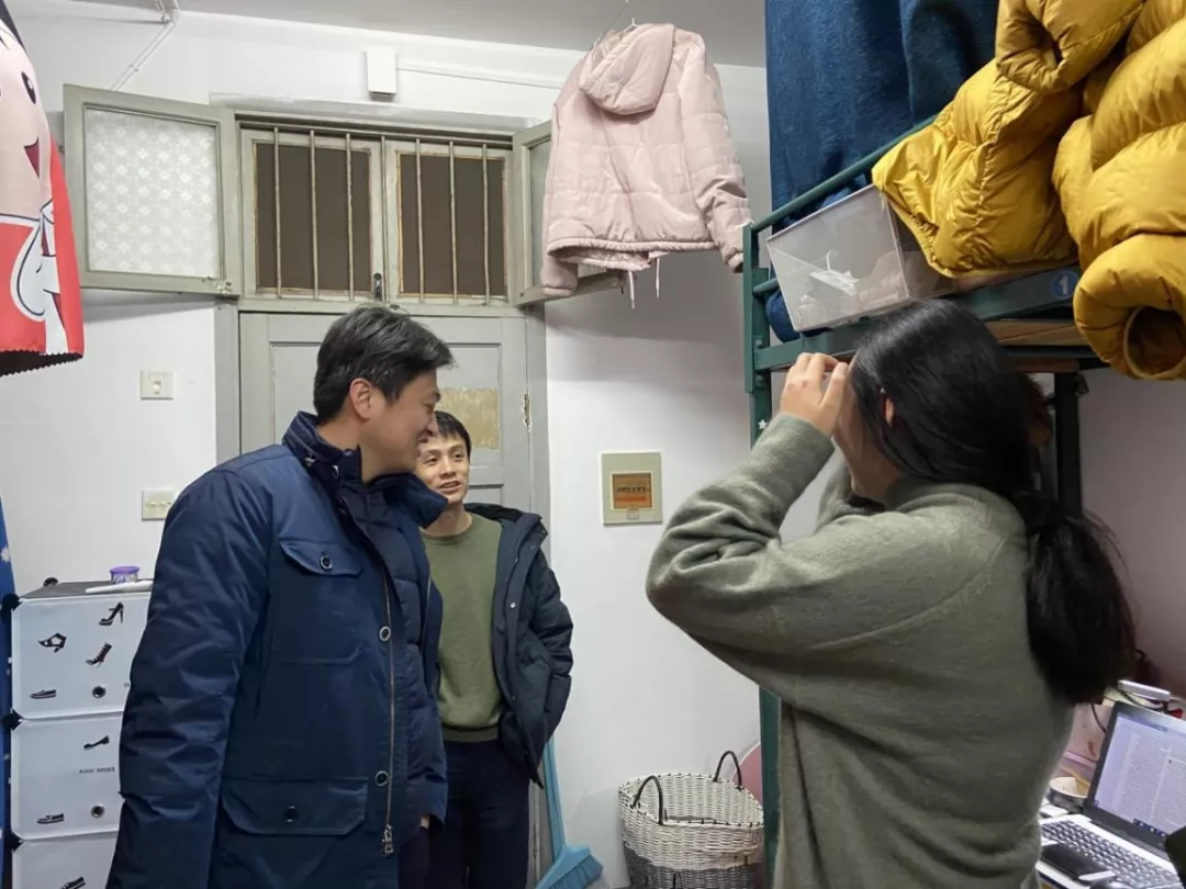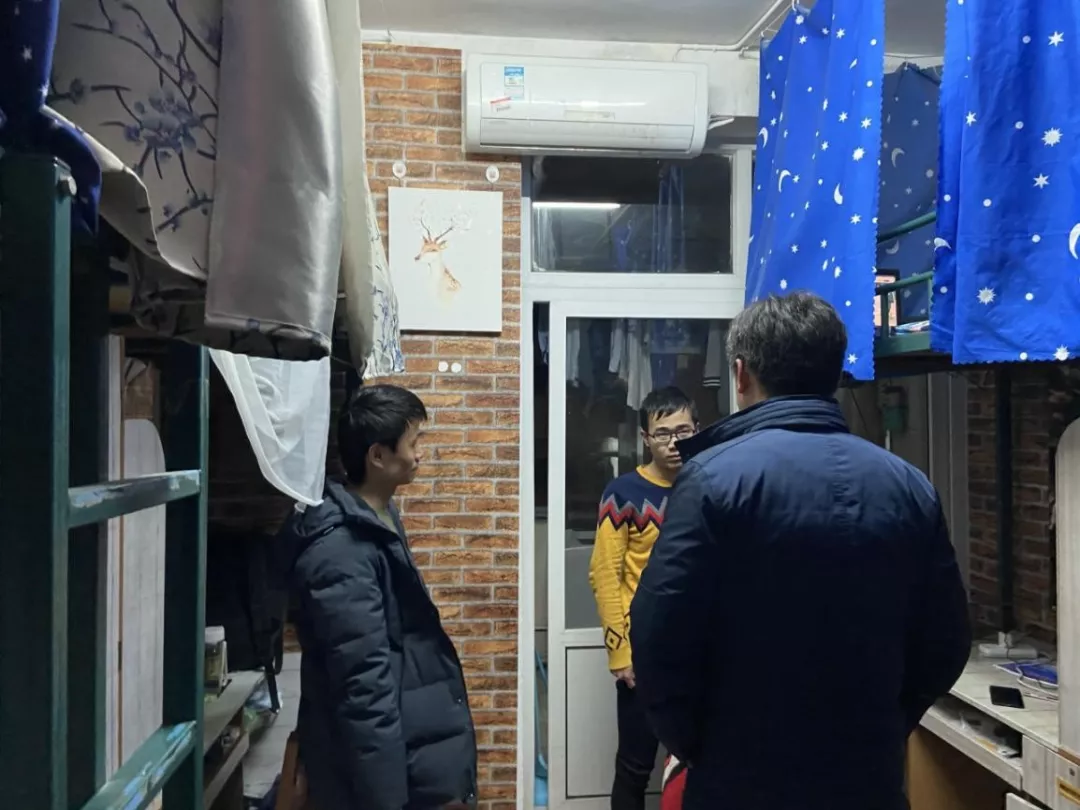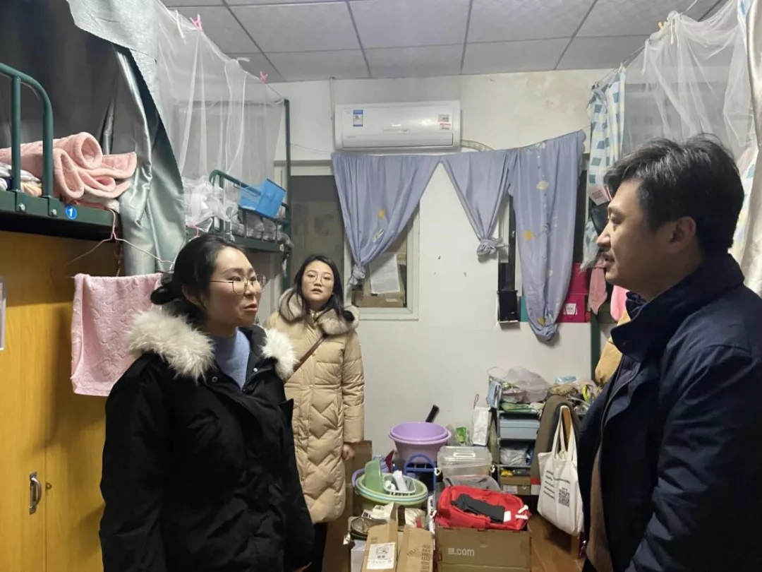 1月15日晚,党委副书记李嵩、学工组组长腾宏达、辅导员罗秋韵、杨沙迪走访紫菘9栋、东7舍、南1舍、韵苑17栋、韵苑25栋,为留校员工送上新年大礼包。走访慰问中,李嵩询问留校原因,了解员工情况,畅谈假期学习生活安排,叮嘱员工注意假期安全用电、安全出行、规律作息。
