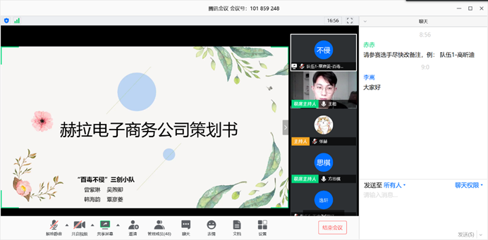 各队伍答辩结束后,参赛队伍与评委进行线上“面对面”交流,四位评委分别从创意理念、市场竞争,后续发展,平台优势等角度对参赛队伍进行提问,并针对不足之处提出建议,希望各参赛队伍能够积极完善项目,祝愿各队伍能够获得更好的发展。