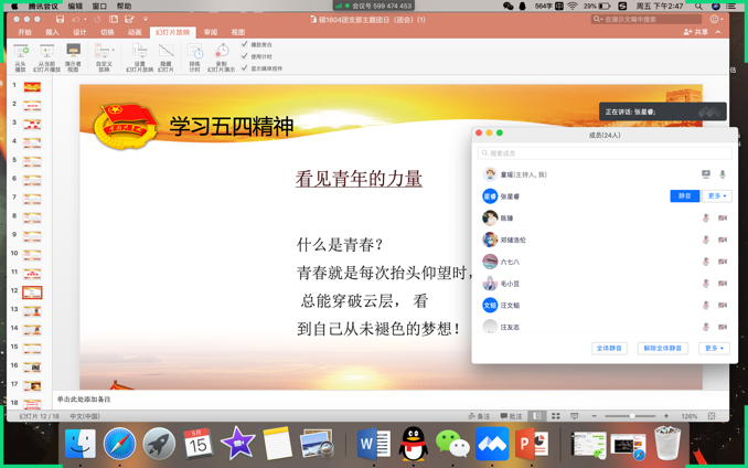 (童瑶/文)为引导广大团员青年认真学习习近平总书记关于新冠肺炎疫情防控工作的重要讲话和指示批示精神,进一步增强基层团支部的组织活力。5月15日,2018级专硕联合团支部结合《共青团中央关于在五四期间组织开展“绽放战疫青春·坚定制度自信”主题宣传教育实践活动的通知》有关要求,线上开展了“传承五四精神,绽放战疫青春”主题团日活动。本次团会由硕士2018级专硕联合团支部团支书童瑶同学主持,团支部全体团员参加会议,研究生辅导员罗秋韵老师为支部成员答疑解惑。