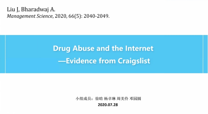最后一次研讨的主题是平台,首先各位同学对崔老师提出的问题即何为平台展开激烈的讨论,接着崔老师就平台的劣势与大家进行讨论并发表了她的一些看法。随后两个小组同学分别向我们展示了“Why Some Platforms Thrive and Others Don’t”以及“Reducing Discrimination with Reviews in the Sharing Economy: Evidence from Field Experiments on Airbnb”这两篇文章,引起了大家的激烈讨论。在研讨的下半场,两组同学展示了‘‘Trust and Disintermediation: Evidence from an Online Freelance Marketplace’’和‘‘Drug Abuse and the Internet: Evidence from Craigslist’’这两篇文章,并且崔老师邀请了‘‘Trust and Disintermediation: Evidence from an Online Freelance Marketplace’’文章作者哈佛大学顾媛老师参与现场会议,顾媛老师讲述了她撰写本文之前收到的启发以及动机,对文章所研究的基本问题即平台的去中介化进行了详细深入的讲解,并对展示小组同学耐心指导和建议。现场各位同学老师也对该问题展开激烈的讨论。