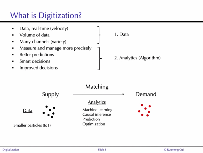 第三次研讨的主题为“Digitalization,AI&Automation”, 在这次研讨过程中,崔老师组织三组同学分享了”Competing in the Age of AI“,”AI and Procurement“,”Operational Transparency : Showing When Work Gets Done”三篇文章。崔老师首先以数字化作为切入点,以苏宁为例与参与研讨的老师同学们探讨了数字化对运营的影响,以及这种影响的本质。接着第一组同学分享了“Competing in the Age of AI”这篇文章,对数字化驱动的运营模式与传统运营模式的冲突进行分析,讨论了智能化是如何影响公司的竞争的。此外,崔老师从这篇文章出发,与大家讨论了企业在数字化转型中的困难,参与研讨的老师和同学积极参与了讨论。之后,崔老师向大家介绍了一个包括数字化、智能化和自动化大的数字运营框架,并以课堂讨论的方式向大家介绍了框架每一部分的含义及模式。然后第二组同学以‘‘AI and Procurement’’为主题进行了分享,在之前介绍的数字运营框架基础上设计实验,研究AI的使用对电子商务平台上供应商报价的影响,了解AI在采购过程中如何创造最大价值。接着,第三组同学进行了‘‘Operational Transparency : Showing When Work Gets Done”文章的分享,通过菜鸟网络提供的数据研究发现配送过程中最后一段时间物流活动的展现会带来更高的物流评分。最后崔老师对参与研讨的同学和老师对文章提出的相关问题进行了细致的解答。