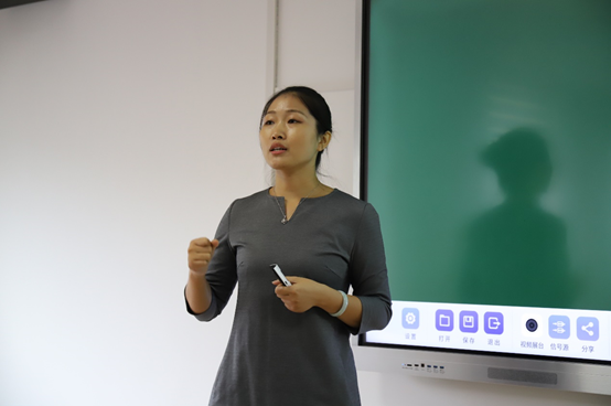 工商管理系郑璐老师介绍了组织行为学的教学设计及逻辑框架,以教学目标为导向,通过团队学习、案例学习、多媒体学习等教学方法,对相关案例进行评估反思,并带领大家了解物质知觉、社会知觉、自我知觉的定义与区别。