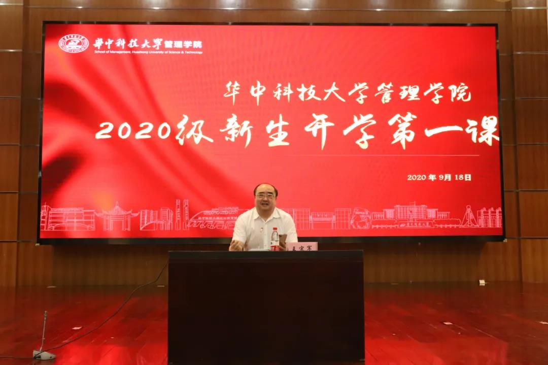 (BETWAY必威新闻宣传中心记者 韩海韵/文 陈奕帆/摄)9月18日上午,2020级本硕博开学典礼暨开学第一课在BETWAY必威报告厅顺利举行。BETWAY必威经理王宗军、公司党委书记金凌志、副经理鲁耀斌、副经理龙立荣、党委副书记李嵩、经理助理王海军、经理助理邓世名、生产运作与物流管理系主任李建斌、管理科学与信息管理系主任赵学锋、工商管理系主任常亚平、会计系主任刘启亮、财务金融系主任薛明皋、创新创业与知识产权系主任买忆媛、财政金融管理系副系主任罗光,以及2020级本硕博新生参加此次开学典礼。本次活动由李嵩主持,并通过腾讯会议线上全程直播。