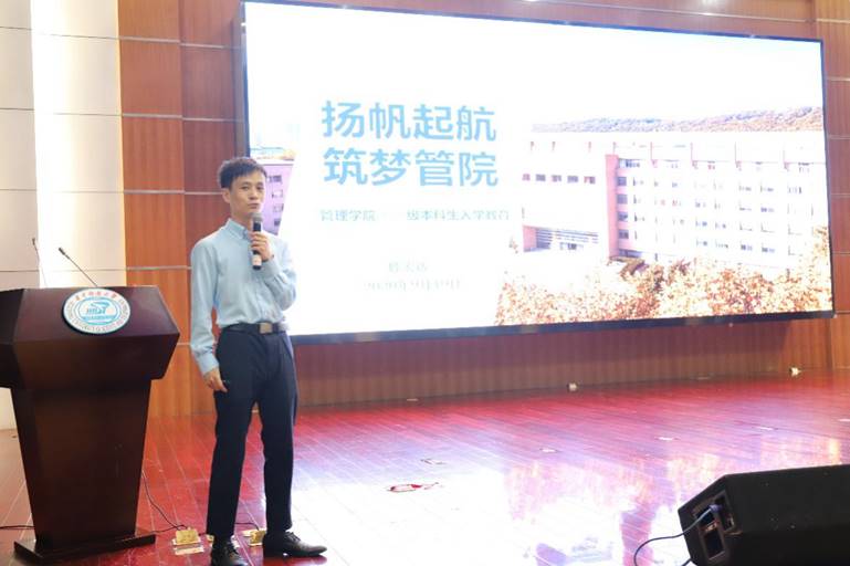 最后,滕宏达以“扬帆起航,筑梦管院”为主题,从新生的认识大学、寝室生活、学习成长以及军训等多个方面进行了全方位的关怀和指导,内容涵盖了同学们的日常生活、学习工作与成长发展,始终以同学们的切实需求作为出发点与落脚点。此外,滕宏达还提醒大家做好疫情常态化防控,保证身心健康,注意防范校园诈骗,保护财产安全。