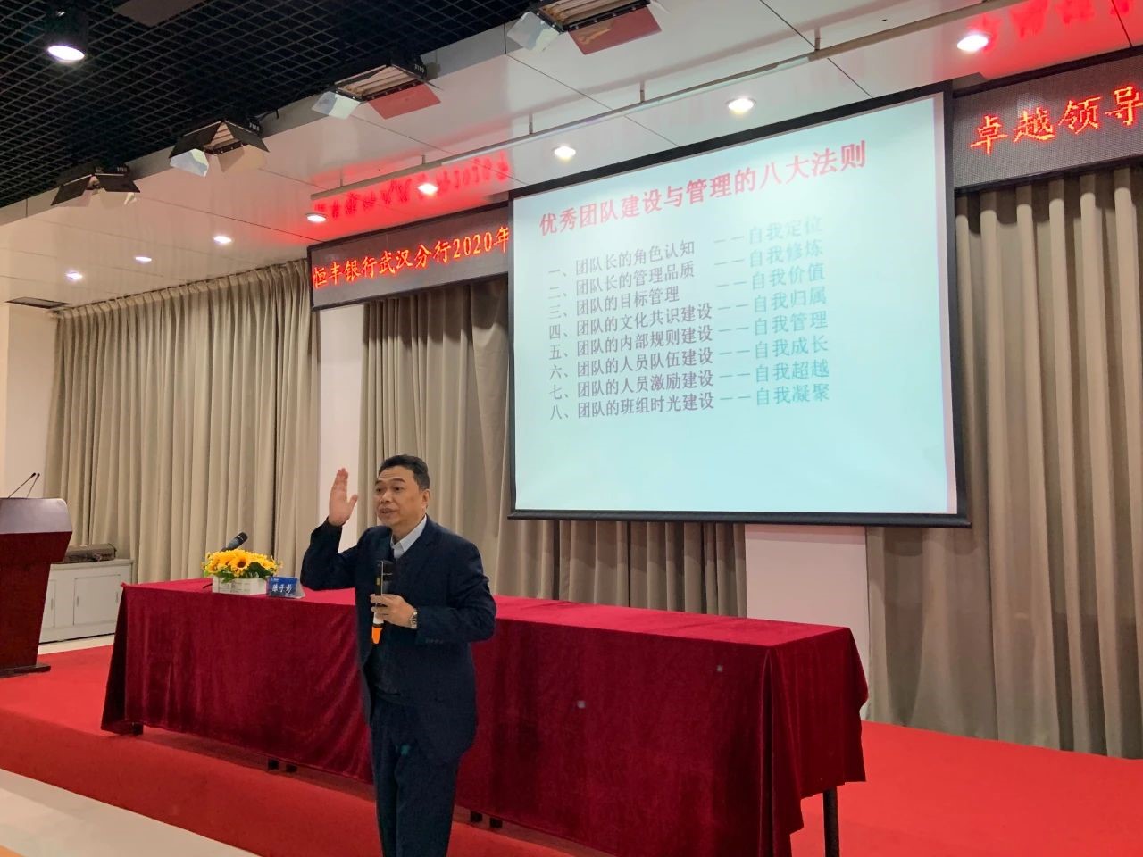 恒丰银行武汉分行党委书记、行长季刚首先指出,近年来,工作上取得了突飞猛进的发展,离不开在座各位的努力。但随着外部经济形势的日益复杂,同业竞争压力不断增大,问题日渐复杂化、多样化,因此举办了此次培训。为深化学习型组织建设,建立健全市场化人力资源管理体系,适应银行高质量发展要求,季刚强调,抓住本次机遇,积极参与培训,培养战略意识,提高履职能力。最后季刚要求学员,一方面要强学习、强管理、强担当,另一方面要身入心入、学以致用、遵守纪律。