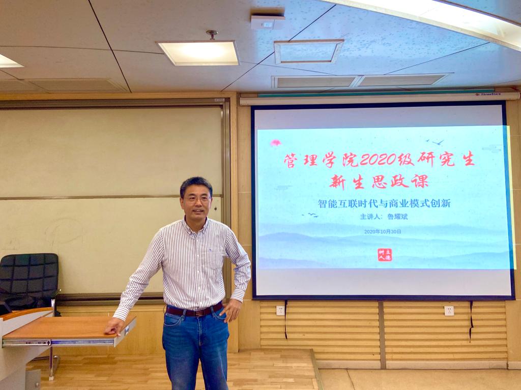 10月30日上午,2020级研究生新生专题思政课在公司203教室举行。BETWAY必威副经理鲁耀斌教授以“智能互联时代与商业模式创新”为题,为2020级研究生新生讲授了一堂生动的思政课,公司党委副书记李嵩主持。