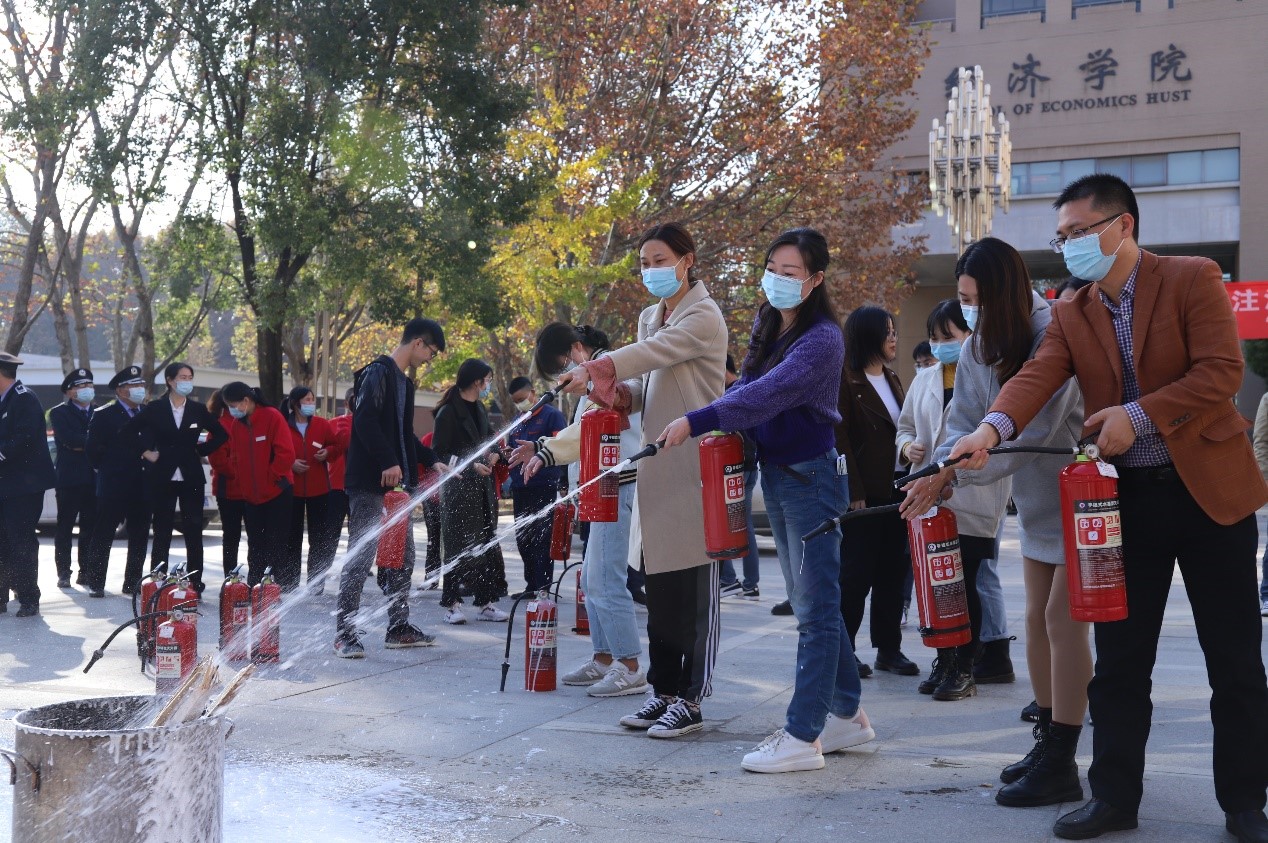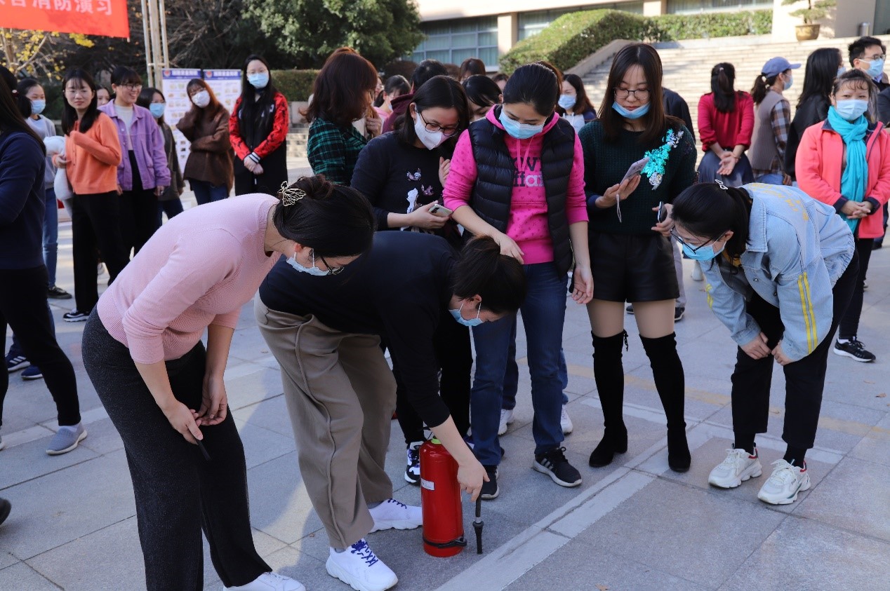 随后,公司师生代表、物业人员亲身体验了如何使用各类消防器材,并在保卫处和消防官兵的现场指导下,师生分组相互配合使用灭火器。