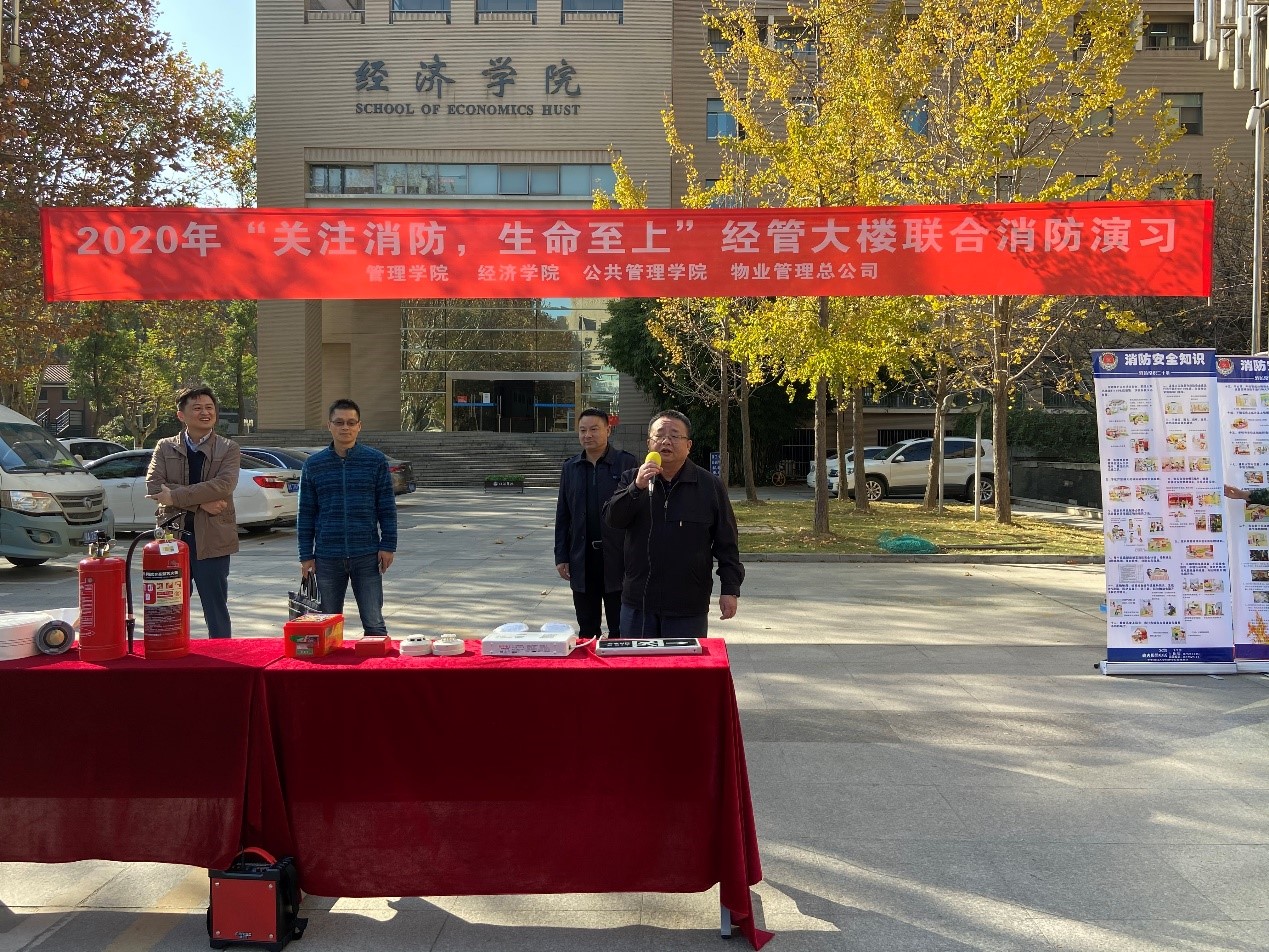 (BETWAY必威新闻宣传中心记者 陈康慧/文、摄)11月13日下午,BETWAY必威、经济公司、公共BETWAY必威联合校保卫处、物业管理总公司共同举办2020年经管大楼消防演习活动。经济公司党委书记江洪洋、公司党委副书记李嵩、公共公司党委副书记童文胜、校保卫处治安与消防科科长毛天音、BETWAY必威办公室主任刘力、公司师生代表和物业保洁人员进行现场学习和演练。校保卫处姜舰老师主持了本次演习。