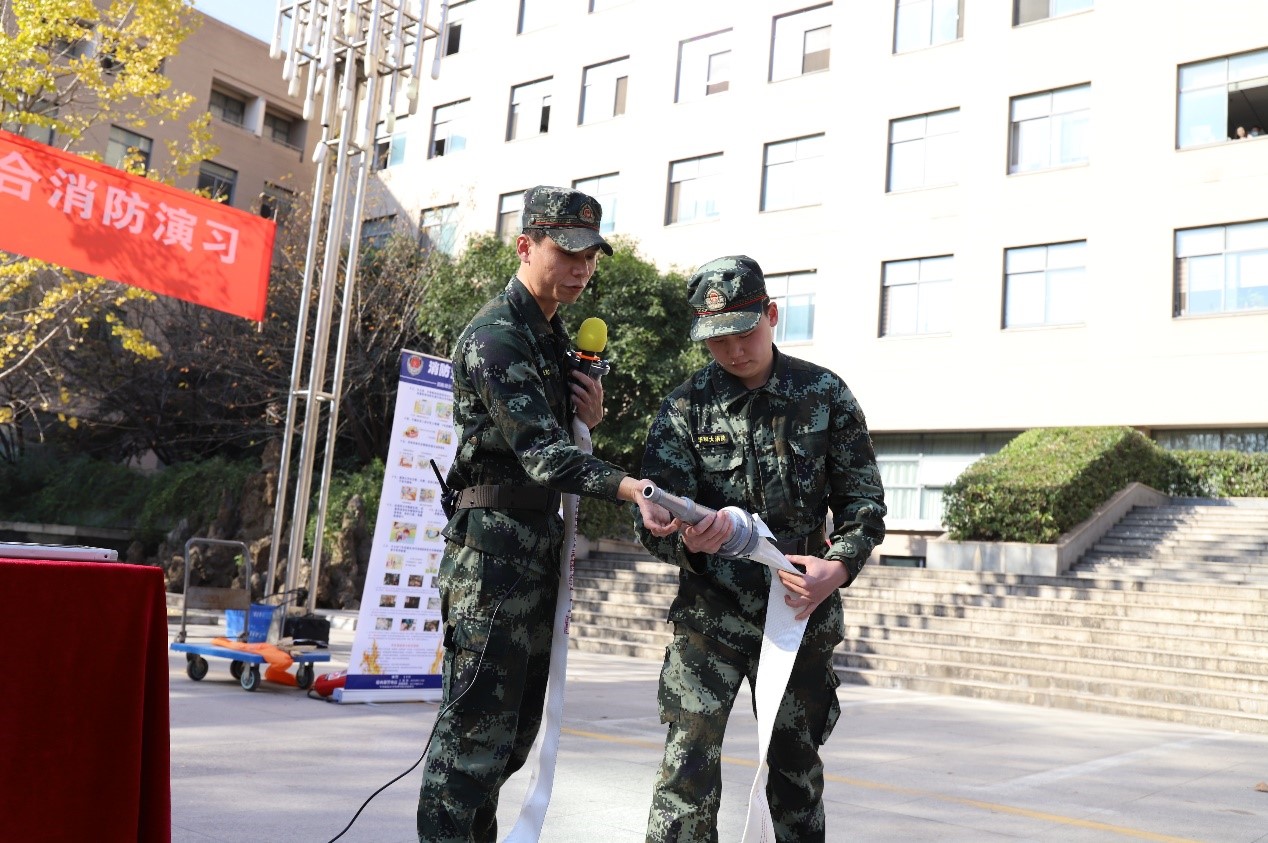 首先,江洪洋发表讲话,他强调了消防安全的重要性,指出进行消防演习是消除安全隐患的有效手段,并提醒各位师生要强化安全意识、落实安全举措。