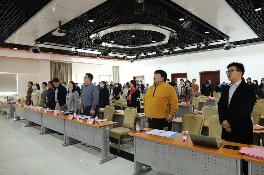 正式会议于14时30分召开。本次研代会分为总结工作和换届工作两个部分。大会伊始,全体成员起立奏唱国歌。
