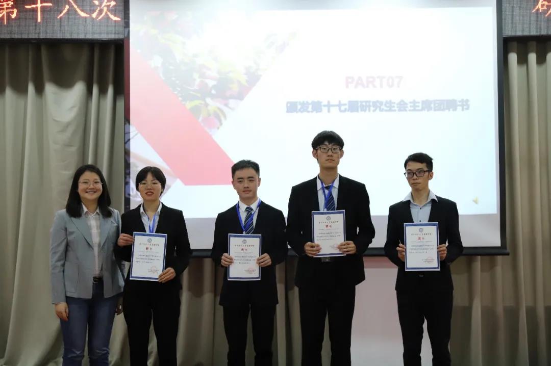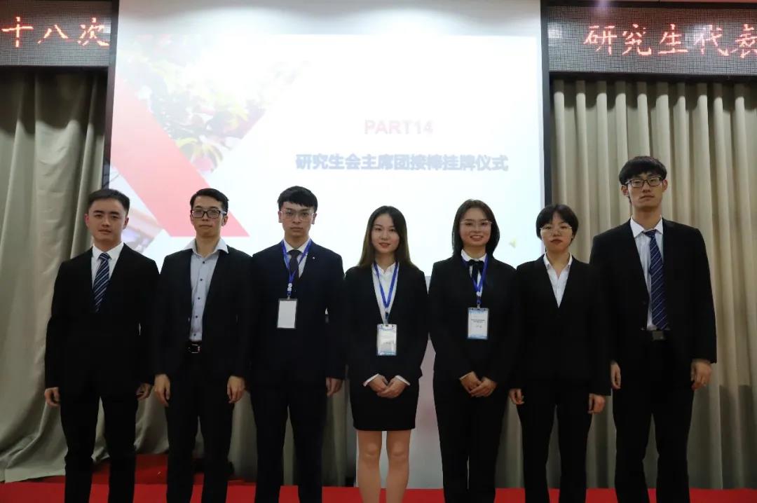 在现场进行无记名投票后,由监票人宣读BETWAY必威第十八届研究生会主席团名单,他们分别是杜智、夏梦茜和杭周昕三位同学。最后,第十七届研会主席团与新当选的第十八届研会主席团进行了工作证交接仪式。至此,本次研代会圆满结束。