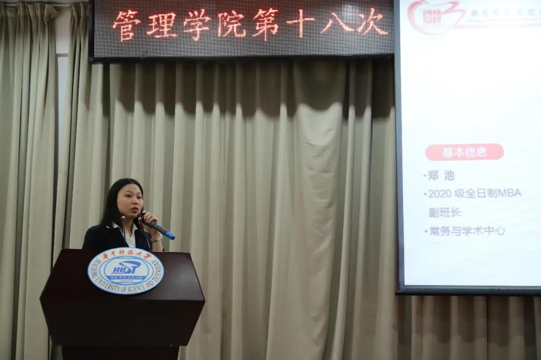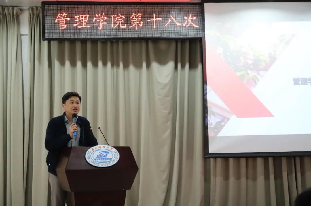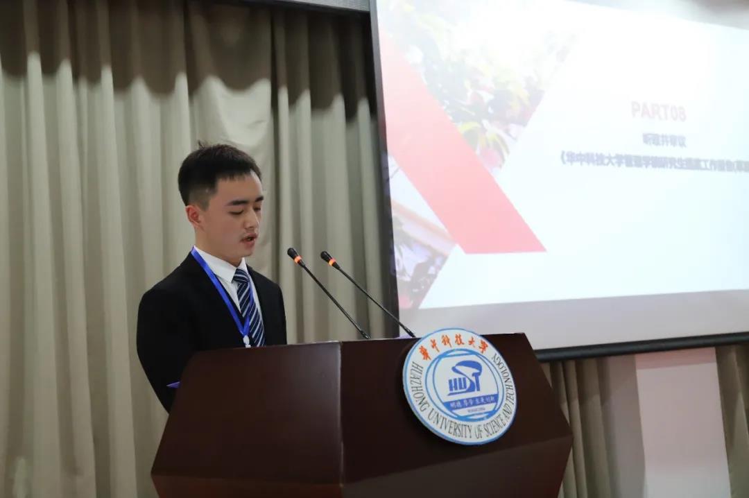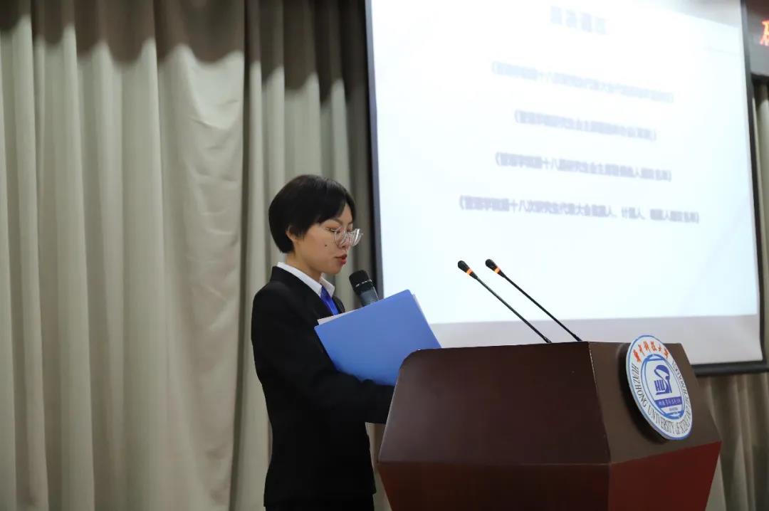 公司党委副书记李嵩老师,公司党委研究生工作部郑名扬老师,学工组长滕宏达,研究生辅导员杨沙迪、罗秋韵,以及各位德育助理参加了本次会议。校研究生会主席团孙铭越以及其他兄弟院系的研究生会主席等嘉宾受邀参加,管院研究生会执行主席夏浩能、研究生会主席团成员、第十七届研究生会成员以及各班级代表参加本次大会。
