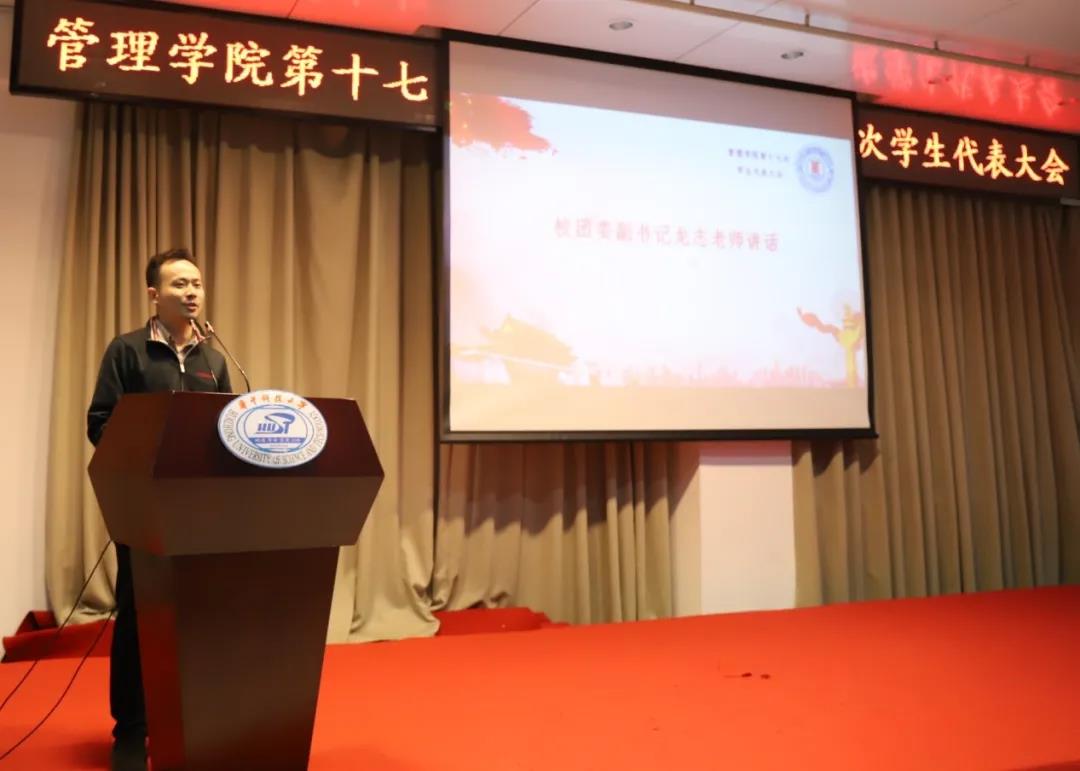 大会开始,现场人员全体起立,奏唱国歌。随后,龙志上台致辞,就政治性、先进性、群众性三方面建议表达了对BETWAY必威员工工作的要求与期待。他表示,员工干部在学深悟透习近平新时代中国特色社会主义思想的过程中,要将党言党语转化为学言学语,推动员工工作顺利进行。对于员工干部的学业水平、思想道德修养等方面,龙志也结合全国学联二十七大会议精神提出了相关要求。