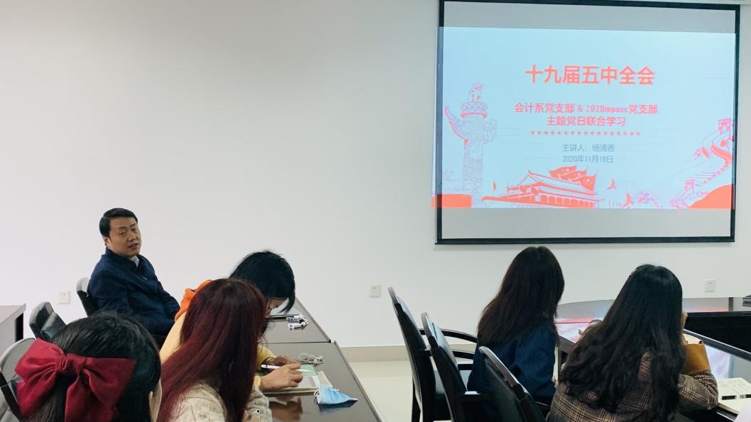按照公司党委要求,结合“携同成长”工作安排,11月19日,会计系教师党支部与2020级MPAcc党支部举行“1+1”联合组织生活会,本次组织生活会由会计系党支部书记杨清香副教授主持,会计系教师党支部及2020级MPAcc党支部全体党员参加会议。
