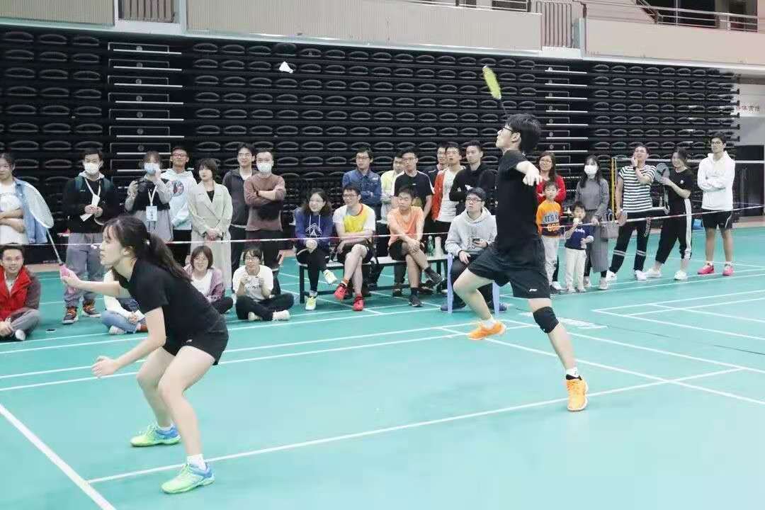 第一场,公司派出最强男单(钱自顺)对阵对方最强男单,双方都来自校羽毛球队且实力不相上下,上演精彩对局也吸引不少观众。在这场比赛中BETWAY必威男单掌控比赛节奏打得较为主动,最终以2:1拿下男单关键一分。