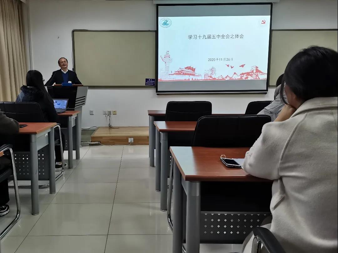 创新创业与知识产权系教师党支部书记袁晓东教授对党的十九届五中全会进行了进一步解读,并分享了他的学习体会。袁晓东从会议提出的我国发展背景、规划目标以及实践要求三个方面出发,分享了他的观点和学习感悟,给大家带来了深刻的启发。最后,袁晓东呼吁大家,要把论文写在祖国大地上,以解决实际问题为最终目标,仰望星空,脚踏实地。