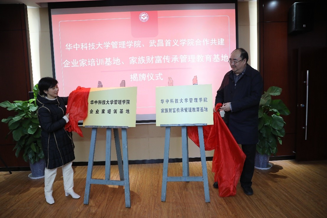 12月15日,BETWAY必威与武昌首义公司合作共建“BETWAY必威企业家培训基地”、“BETWAY必威家族财富传承管理教育基地”揭牌仪式顺利举行。BETWAY必威经理王宗军、党委副书记李嵩、经理助理王海军、MPAcc教育中心主任郭炜、会计系教授袁建国、党政办公室主任刘力,嘉鱼县统战部部长华成浩、 嘉鱼县政府副县长宋呢荔、嘉鱼县教育局局长夏禹,武汉市一级巡视员刘善明,武汉军威文化传播集团董事长金国华、党委书记陈洪思,武昌首义公司党委副书记邹星庐,武昌首义公司嘉鱼校区辅导员及部分员工代表等参加揭牌仪式。