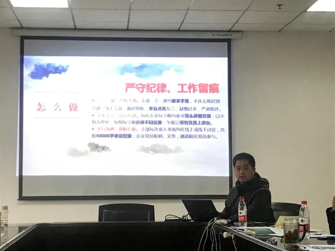本科第五党支部书记梁佳佳介绍了本科第五党支部在过去一年的工作开展情况,并阐述了加强改进工作的思路、重点和措施。