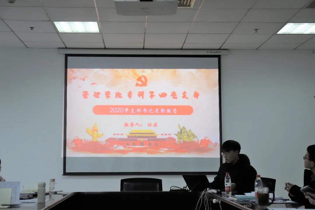 本科第四党支部书记江乐介绍了本科第四党支部的基本情况、基层党支部政治核心情况、党员发展培养情况和未来改进方向。