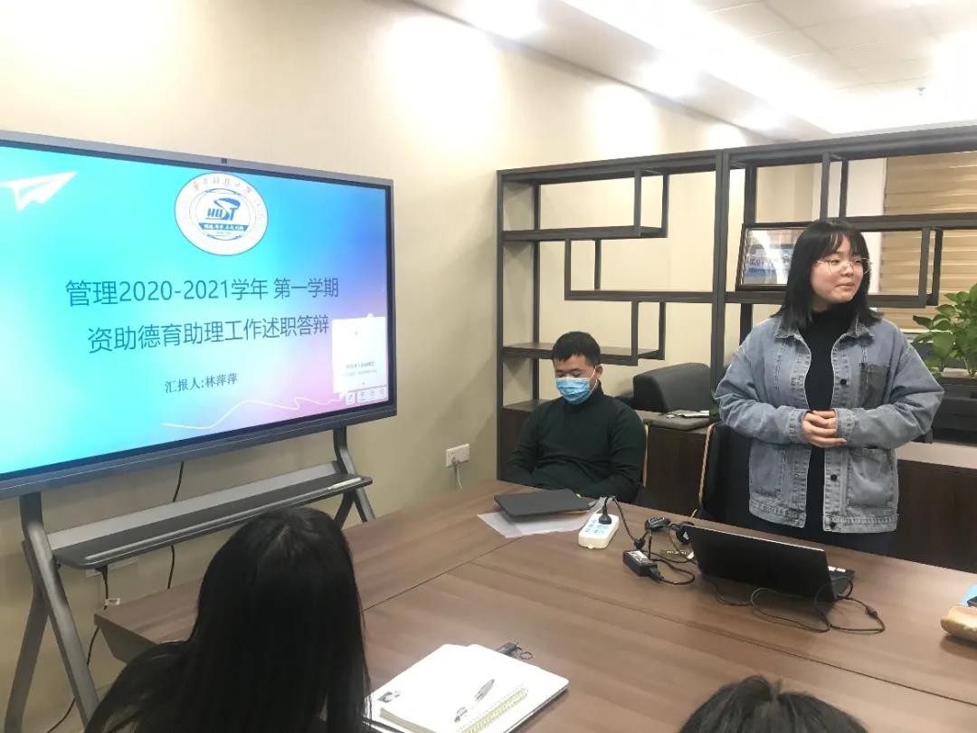 (BETWAY必威新闻宣传中心记者 陈康慧/文、摄)为落实立德树人的根本任务,检验德育助理工作成效,落实校研究生工作部德育助理考核要求,BETWAY必威于1月5日下午16:00,在公司212会议室开展2020-2021学年第一学期德育助理述职答辩会。BETWAY必威学工组辅导员杨沙迪、罗秋韵、钟杨以及德育助理参与了此次答辩。