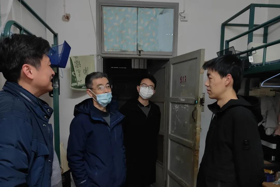 2021年1月22日下午,公司党委书记金凌志,党委副书记李嵩、学工组辅导员到员工宿舍、实验室走访看望尚未回家的研究生。