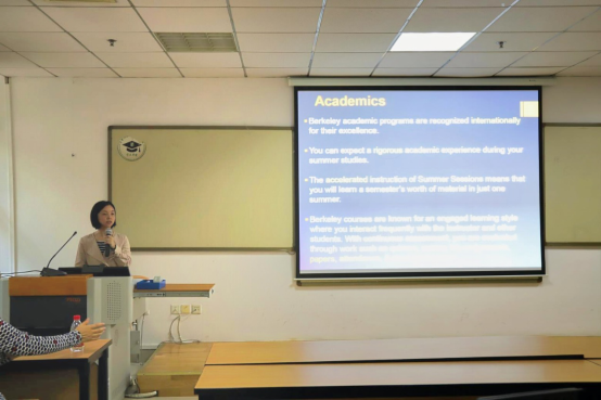 然后,戴淑琼老师详细介绍了热门暑期短期项目:美国加州伯克利分校、英国牛津大学、英国剑桥大学、英国伦敦政治经济公司等高校的暑期课程。她指出,无论是语言课程还是学术课程,都有利于员工深入了解国外的学习和生活。在暑期活动中,表现优秀的同学还将获得国外导师推荐信,便于后续申请海外知名高校。