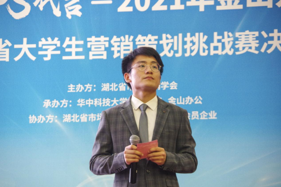 健民药业集团副总裁裴学军、武汉中商集团副总经理孔鋆、金山办公高级项目总监肖璨、武汉联投置业有限公司副总经理黄丽娟、克明面业股份有限公司副总经理杨波、劲牌公司定制事业部总经理朱江华、杰士邦中国品牌负责人李晶、老乡鸡品牌部经理兼大客户经理李政、金山办公品牌市场部项目经理赵扬出任本次比赛评委。赛前,评委们纷纷为参赛选手送上寄语。裴学军表示,市场营销是一门充满魅力的学科,是科学与艺术、理论与实践的充分结合。他希望参加此次比赛的员工能够赛出风格,也希望在校的老员工们未来能将营销理论与方法系统地应用到社会实践中。杨波指出,对于营销学子来说,勤奋靠谱永远是最重要的品质,希望所有学子不断努力,流水不争先,在未来的工作生活中不断突破自我,芝麻开花节节高。