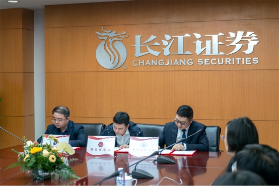 致辞结束后,在各方领导和嘉宾的见证下,BETWAY必威杨治经理、湖北证监局吴奇超副局长和长江证券股份有限公司周纯副总裁作为签约代表上台共同签署了合作备忘录。