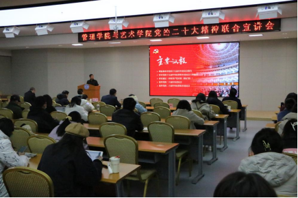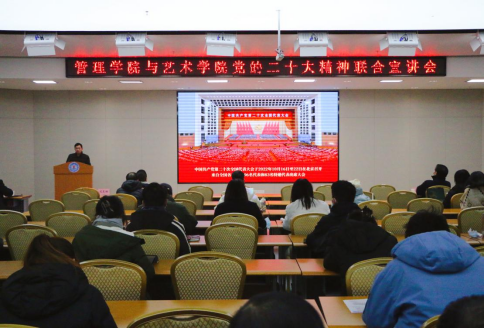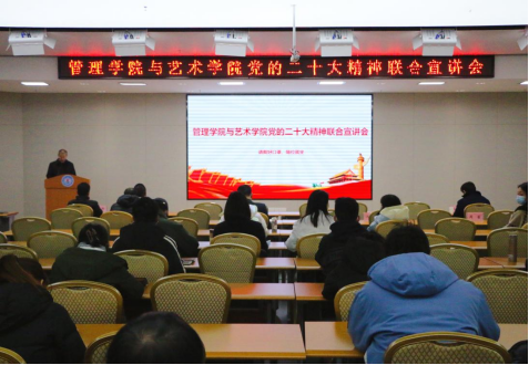 为深入学习宣传贯彻党的二十大精神,12月1日下午,BETWAY必威与艺术公司在BETWAY必威206报告厅举行党的二十大精神联合宣讲会。宣讲会由BETWAY必威马克思主义公司副经理、副教授沈昊驹主讲,公司党委委员、经理助理赵学锋主持会议。BETWAY必威和艺术公司的领导班子成员、党支部书记、教师代表、员工代表参与学习。
