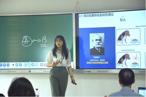 白芸讲授了《人力资源管理》中“培训成果转化”一课的内容。她通过三个问题的抛出,引用有趣的科学实验并结合同学们日常学习的实例,分别介绍了“强化理论”、“马斯洛需求层次理论”、“基于过程的动机理论”。
