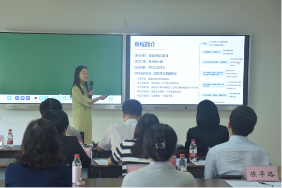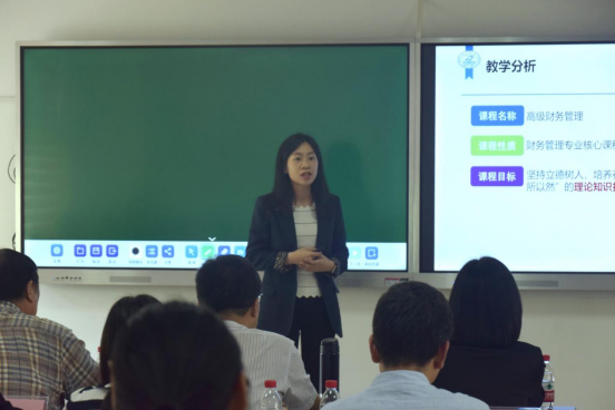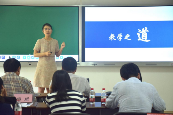 参赛教师们选取自己所授课程的某一章节,先以五分钟的说课环节介绍所授课程的目标、内容与教学方法,然后以自选课程片段为例进行授课展示。