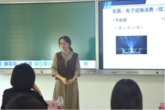 周元元则讲授了《消费行为学》中的“愉悦情绪”一节,她通过生活中的小实例生动形象地解释了愉悦情绪的内核和管控机制。她强调,愉悦情绪与成瘾行为之间存在一定联系,教育也应该让员工明白这一点,避免电子成瘾消费的发生。