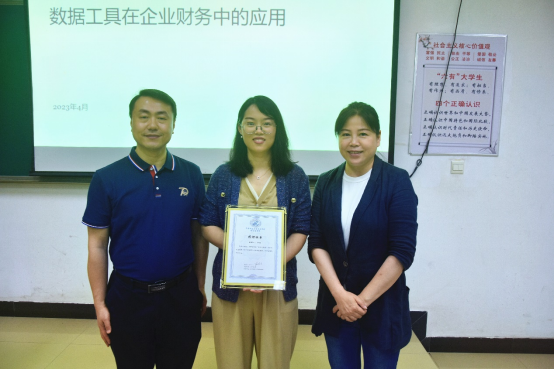 华夏为同学们介绍了数据工具在企业中各个环节的具体应用,通过财务人员的报表制作、数据分析之后呈现给企业的各个部门的数据,对使用者来说更加友好。为方便理解,华夏通过三个具体的案例,与会计学原理课程所学知识相结合,生动进行讲解。财务人员通过数据的清洗与整理,再对数据进行优化分析,可以给管理层提供决策优化建议,同时节省时间成本与人力成本。另一方面,用软件以图表、表格、云图体现数据,使数据可视化,可以把数字翻译成图表呈现给业务部门,节省各部门精力,把更多的时间用在更重要的事情上。