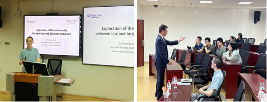 下午,Fernando Barrio在119教室就 “Exploration of theRelationship betweenLaw andBusinessInnovation”为主题进行了学术分享。本次学术讲座由创新创业与知识产权系讲师阳维主持。Fernando Barrio运用历史和当前技术领域的案例,探讨了法律与商业运营之间的关系,并就法律及包括市场、架构、社会准则等其它行为约束提出观点,之后基于AI在创新及知识产权领域的运用与前景表达了自己的看法。讲座吸引了本、硕、博各层次员工,现场讨论热烈,多名博士生就AI和IP相关研究与Fernando Barrio进行了深入讨论。